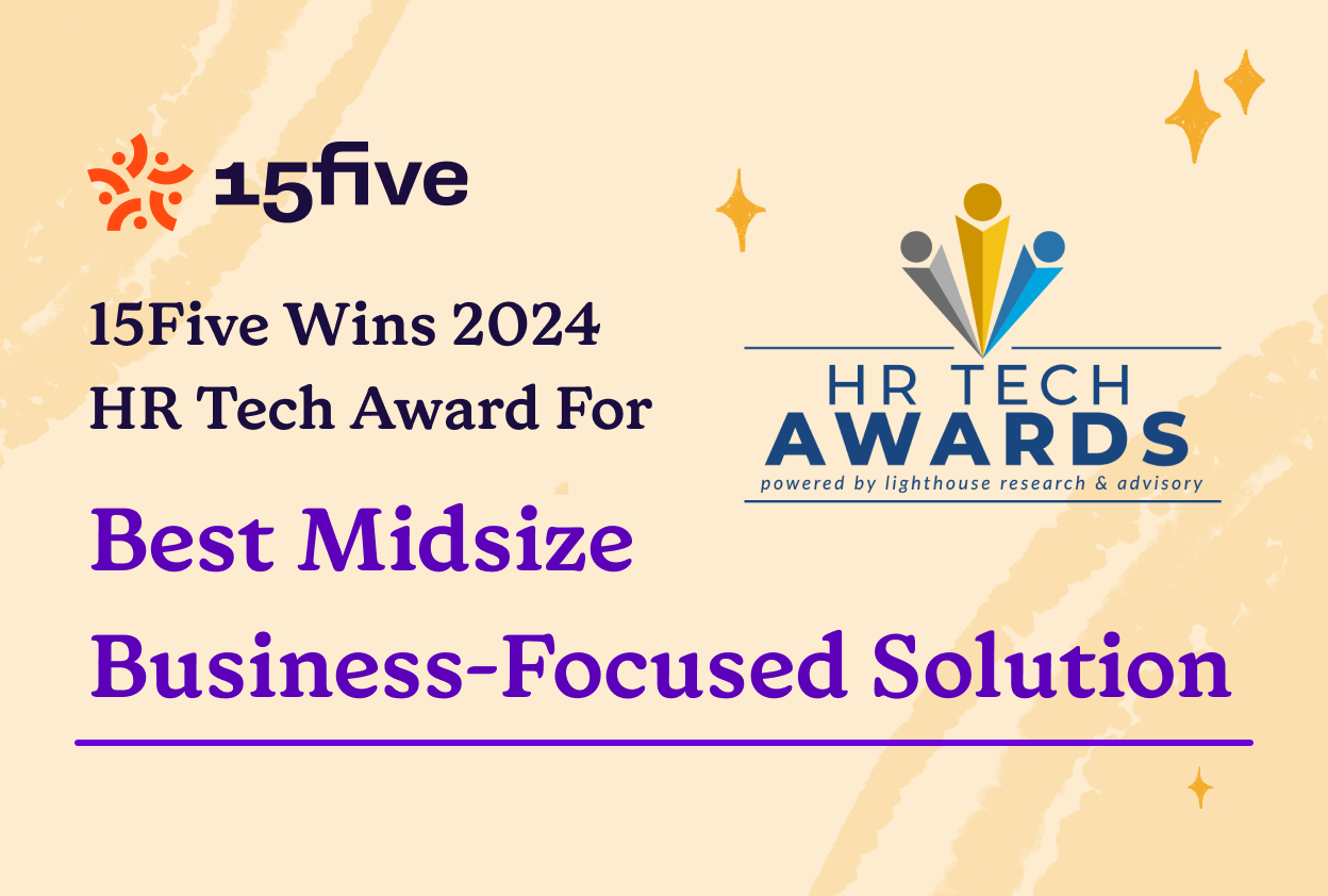For the second consecutive year, 15Five has been named a winner of Lighthouse Research and Advisory’s HR Tech Awards in the Talent Management category as a Best Midsize Business-Focused Solution. The 2024 recognition includes a special emphasis on how organizations have benefitted from 15Five’s HR Outcomes Flywheel approach, our guiding philosophy that enables strategic HR by connecting its impact to the business through higher employee performance, retention, and engagement.