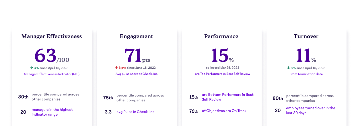 - Early Adopter of Manager Effectiveness Indicator: Embracing innovative tools like the Manager Effectiveness Indicator offered deeper insights into managerial effectiveness and impact and its correlation with engagement and retention.