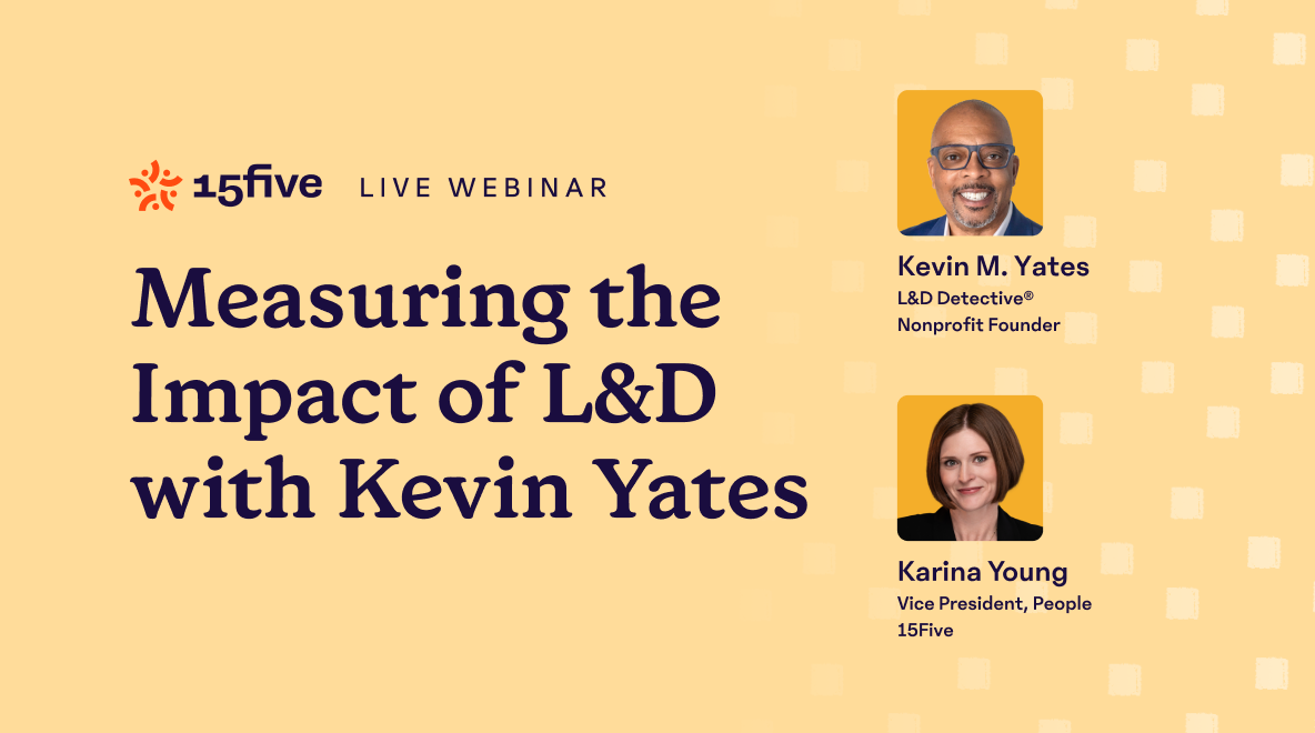 Join Karina Young, VP of People at 15Five, and Kevin M. Yates, the renowned L&D DetectiveÂŽ, for a webinar on measuring the true impact of learning and development initiatives. This session is designed for HR leaders and L&D professionals wanting to connect learning strategies directly to business outcomes.